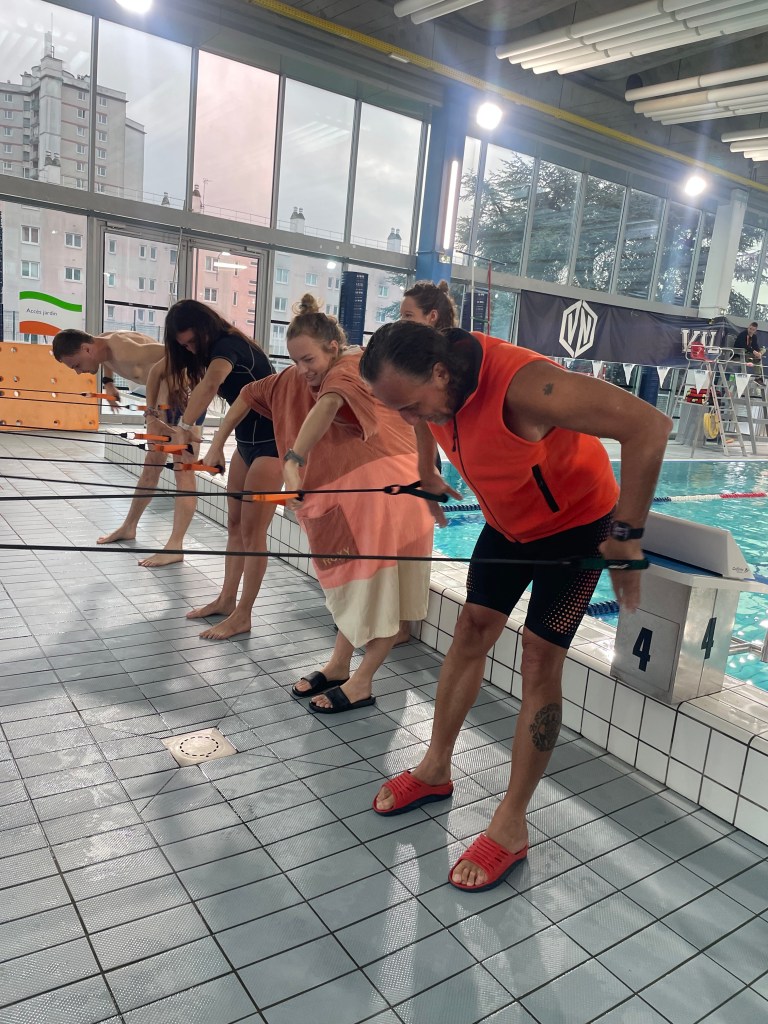 En piscine, des exercices variés nous ont permis de travailler notre technique et notre efficacité. Les sessions théoriques ont été l’occasion d’aborder les fondamentaux de la nage, tandis que les analyses vidéo nous ont offert un regard précieux sur nos mouvements.