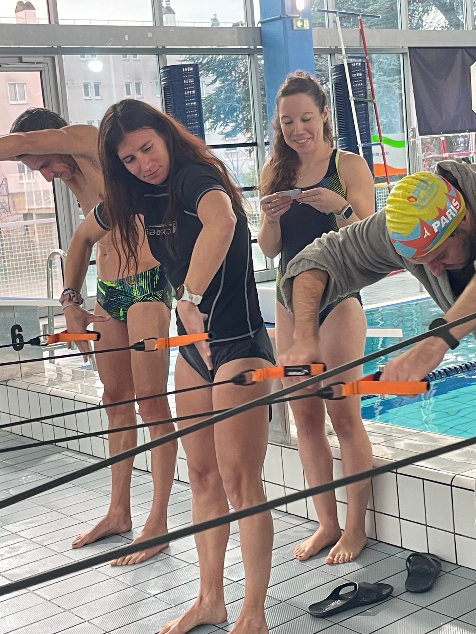 En piscine, des exercices variés nous ont permis de travailler notre technique et notre efficacité. Les sessions théoriques ont été l’occasion d’aborder les fondamentaux de la nage, tandis que les analyses vidéo nous ont offert un regard précieux sur nos mouvements.